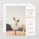 This stunning design combines simplicity with elegance, creating a timeless and sophisticated announcement for your upcoming wedding. The clean white background serves as the perfect canvas for the beautiful script typography, which highlights your names and wedding date in a minimalist and stylish way. Add a personal touch by including your favourite engagement photo, making it a cherished keepsake for your loved ones. To change details, click «Details». To move the text or change the size, font, or colour, click «Edit using Design Tool». Designed to coordinate with for the «Chloe» Wedding Invitation Collection. View the collection link on this page to see all of the matching items in this beautiful design.