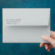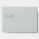 This wedding envelope features a minimalist design with clean lines and ample negative space, creating an elegant and uncluttered appearance. The color palette consists of black text on a white background, emphasizing simplicity and readability. The typography includes a sophisticated serif font for the names and a contrasting sans-serif font for the address, ensuring clarity and formality. The overall style is modern and understated, making it ideal for formal communications or announcements.