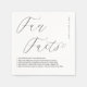 Make your wedding reception memorable with our elegant white napkins featuring personalised fun facts about the bride and groom. These stylish napkins are adorned with a delicate black thin script and a charming heart symbol, adding a touch of elegance to your special day. Perfect for cocktails, appetizers, or desserts, these napkins combine practicality with a personal touch. Customise with your names and unique fun facts to create a keepsake your guests will adore. Affordable and chic, these napkins are a must-have for any unforgettable wedding celebration.