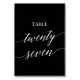 This elegant white on black table twenty seven table number is perfect for a simple wedding. The neutral design features a minimalist card decorated with romantic and whimsical typography. The card prints on the front and back (double-sided). Other table numbers in the collection are sold separately.