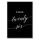 This elegant white on black table twenty six table number is perfect for a simple wedding. The neutral design features a minimalist card decorated with romantic and whimsical typography. The card prints on the front and back (double-sided). Other table numbers in the collection are sold separately.