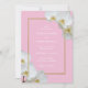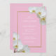 Invite your loved ones to celebrate your marriage with this elegant and modern personalised wedding invitation. Delicate white orchid blooms beautifully accent your names, against a sophisticated pink backdrop framed with a subtle gold border. Customise with all your essential wedding details for a timeless announcement.