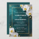 Set a tone of timeless romance and modern luxury for your special day with this stunning deep teal wedding invitation. The design features a rich, dark teal background enhanced with a shimmering gold glitter spray and elegant white orchid blossoms. A delicate metallic-look gold border frames the text, adding a touch of high-end refinement to your wedding announcement.