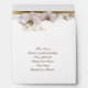 Wedding envelope depicts a simple watercolor floral design with elegant white orchids and a gold frame. It features a pre-printed return address on the back and inspirational quote, "Two lives united in friendship, Two friends united in love, One love united in Christ." All text can be deleted or customised to details of your choice.