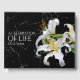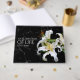 Keep the memory of loved ones who have passed on alive and burning bright with this elegant memorial guest book / book of condolence, which features delightfully fragrant white Casablanca Oriental lilies on a black marble background. Personalise with name, years, and photo on the back cover.