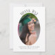 Simple and modern graduation thank you template card to send out to those who congratulated you, attended your graduation party, gave you gifts etc. White oval photo frame with an elegant typography text that says "thank you" at the top. You can add a second picture on the back and the message is editable.