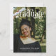 Photo graduation invitation with graduate in an elegant font with a little graduation cap on the a. Modern typography graduation invitation personalised with three photos, one large on one side and two smaller on the other. Dual graduation invitation and graduation announcement printed with a large photo of the graduate.
