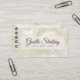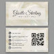 A sophisticated and modern business card featuring a luminous white pearl opal background, contrasted with deep charcoal text and icons for a timeless luxury look. Designed with a QR code and social icons, it's perfect for beauty, bridal, or upscale wellness professionals.