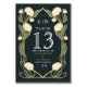 Capture timeless elegance with this Art Nouveau-inspired Table Number! Featuring white peonies, leaves against a rich blue background, this design sets the tone for a sophisticated celebration. Perfect for weddings, galas, and milestone events! Please note that the gold on this product is NOT real foil; it is printed flat. ATTENTION: Items are printed exactly as they appear on your screen when you add them to the cart, so personalise and add each table number you need to your cart individually.
