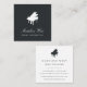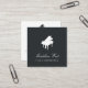 These elegant square business cards for piano instructors, lessons, music teachers or piano tuners feature a white grand piano illustration on a rich, soft black background, with two lines of custom text in classic block and calligraphy script lettering. Customize the back with your full contact details beneath a smaller matching piano illustration.