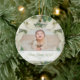 Share your baby's holiday photo with this economical white poinsettia ornament. White poinsettias are elegant and should not clash with whatever colors you have in your photo. Poinsettias are the official flower of Christmas. Traditional, yet the soft white gives it a more modern feel. The sentiments are fully customizable to your liking as well.