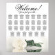 Make your wedding reception a memorable and elegant affair with this stunning 27 table seating chart. The design features a single long-stemmed ivory, white, or cream coloured rose resting gracefully on its side, reflecting in the water, adding a timeless and romantic touch. The fancy script calligraphy title reads "Welcome! Please find your table," with the couple's names and wedding date at the bottom. With this seating chart, you can effortlessly add beauty, elegance, class, and style to your reception, while ensuring your guests can quickly locate their seats. Your special day deserves the perfect finishing touch, and this seating chart is just what you need to make it unforgettable.