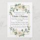 Timeless white rose and eucalyptus greenery wedding invitation with a thin gold frame and fully editable names, date, venue, and RSVP details for a classic romantic ceremony and reception.