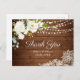 Elegant White Roses and Lace Rustic Wood Thank You Postcard