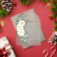 Elegant and classy white rose and eucalyptus floral "Baptism" script text design with dark gold-toned confetti and shadowing and a sepia gold-toned simple cross. Back features a watercolor gradient sage green background with green and sparse dark gold-toned confetti splatters.