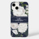 Elegant White Roses Greenery Navy Blue Monogram Case-Mate iPhone Case