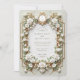Set the tone for your wedding day with this exquisite invitation design, featuring delicate white roses surrounded by lush green foliage. The card is framed with ornate faux gold baroque and art deco-inspired patterns, giving it a timeless and sophisticated feel. The soft sage green background adds a touch of elegance, making it perfect for formal weddings or romantic events. Please note, the gold and embossed effects are part of the printed design and do not include real metallic foil or raised textures.