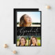Elegant White Script 3 Photo Black Graduation Announcement