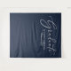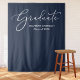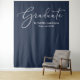 Elegant White Script Blue Graduation Backdrop Tapestry