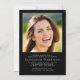 Celebrate your graduate's achievements with this elegant black graduation announcement and party invitation. Their photo fills the front of the card overlayed with "Graduate" in a chic white script; underneath, add their name, school and class year in classic white serif typography. On the back, add an additional photograph and your graduation party details in simple white lettering.