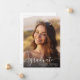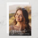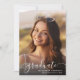 Celebrate your grad with a custom graduation announcement featuring their photo overlayed with "graduate" in a stylish white script with swashes. Add their name, school and class year in simple white typography.