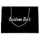 An elegant white script appears on both sides of this black gift bag. You can edit the display text if desired (shown: Custom Text).