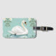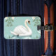 Elegant white swan swimming on water with flowers on pale blue background design.