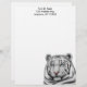 Original fine art design of a white tiger by illustrator Carolyn McFann of Two Purring Cats Studio on customisable letterhead for big cat fans.