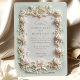 Create an unforgettable first impression for your wedding with this sophisticated invitation featuring graceful white tulips intertwined with intricate foliage. The design is framed with faux gold baroque-inspired details and set against a soft sage green background, exuding timeless elegance and romance. This invitation is ideal for formal or vintage-inspired weddings. Please note, the gold accents are part of the printed design and do not include real metallic foil or embossed textures.