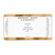 An elegant minimalist cosmetics bottle label with a white background, black text, and a faux gold border. This label contains space for your product name, business name, product weight, ingredients, instructions, social media, and business address. This label measures 3.75 inches by 2 inches (95 mm by 51 mm) and is suitable for bottles with a diameter of 1.2 inches (31 mm) or more such as 2 oz (60 ml) to 4 oz (120 ml) bullet, cylinder, and boston round bottles. It can also be used for cosmetic jars and other types of cosmetics packaging.