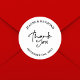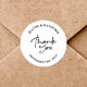 Elegant White Wedding Thank You Calligraphy Favour Classic Round Sticker