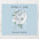 This elegant winter-themed illustration features a beautifully detailed white fantasy dragon nestled among soft white roses, symbolising purity, protection, and new beginnings. Set against a cool blue background with delicate snowflakes, the artwork blends romance and fantasy, making it a perfect fit for a magical winter wedding. The gentle palette and refined line work create a serene and enchanting aesthetic that enhances and adds a unique touch of fantasy elegance.