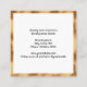 An elegant square business card with a white background, black text, and a faux gold border.