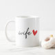 This stylish white mug features the word "wife" in sleek black script paired with a vibrant red heart, creating a timeless and romantic design. Perfect for celebrating love and appreciation, this mug makes a thoughtful gift for any special occasion, such as anniversaries, Valentine's Day, or just because.
