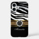 Elegant Wild Zebra Stripe and Leopard Black Gold White, Diamond Pearl Jewel. Animal pattern Print Black and Gold, faux Jewel. Elegant Classy Phone Mobile Case Girly for Women girl Add Name Initials Glitter (Be advised that image will appear darker on Case) Fabulous product for Women, Girls, Zizzago created this design PLEASE NOTE all flat images! They Do NOT have real Glitter, Diamonds Jewels or real Bows!!