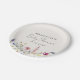 Elegant floral baby shower paper plates featuring a bottom border of watercolor wildflowers and foliage in shades of pink, yellow, purple, blue, and green on a cream background. Personalise the wildflower baby shower paper plates with the mum-to-be's name and the date. The personalised wildflower paper plates are perfect for spring and summer baby showers.