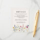 Enhance the allure of your spring or summer wedding with our Elegant Wildflower Meadow Cream Wedding Details Card, adorned with whimsical watercolor wildflowers and lush foliage in a palette of pink, yellow, purple, blue, and green. Complementing our wedding invitation, this elegant addition ensures every guest stays informed about essential wedding details. Radiating the essence of nature's beauty and modern sophistication, our Elegant Wildflower Cream Wedding Details Card is the perfect choice for couples seeking a harmonious blend of tradition and innovation on their special day.