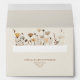 Add rustic elegance to your wedding suite with this 5x7 ivory champagne envelope, designed to complement boho-chic and nature-inspired celebrations. It features a refined return address and monogram on the top flap, while the interior showcases a delicate watercolor wildflower design accented with touches of gold. A perfect way to elevate your wedding invitations with natural charm and sophistication.