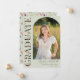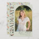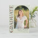 This elegant stylish photo graduation announcement features a vertical photo in arch style and headline in wildflower text with customisable script name and text on a light green background. Back features wildflower pattern. A great way to showcase your graduate. Click the edit button to personalise this design.