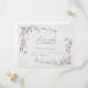 Pretty and delicate, this trendy wildflower wedding invitation RSVP postcard design features delicate hand painted watercolor florals in shades of purple, lilac and lavender, with modern hand lettered calligraphy typography, over a faux handmade paper texture. Contact designer for matching products, and view entire wedding suite here: https://www.zazzle.com/collections/elegant_modern_wildflower_watercolor_art_paper-119612444411079619. Copyright Anastasia Surridge for Elegant Invites, all rights reserved.