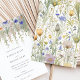 This elegant wedding invitation features a breathtaking wildflower design, perfect for a romantic, garden, or rustic-themed wedding. The front of the invitation showcases a beautifully detailed arrangement of wildflowers in soft pastel hues, including shades of lavender, peach, pink, and cream. The watercolor style captures the delicate beauty of nature, creating a serene and enchanting atmosphere. The back of the invitation continues the floral theme, providing a cohesive and harmonious design that complements the overall aesthetic. The text is elegantly presented in classic serif and cursive fonts, adding a touch of timeless sophistication. This invitation is ideal for couples looking to infuse their wedding stationery with natural beauty and charm.