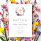 Elegant Wildflower Wreath Girl Baptism Invitation.