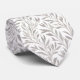 A graceful botanical willow patterned tie features delicate willow leaves in soft dusty brown tones on a white background.