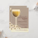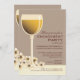 A beautifully hand-drawn elegant wineglass of a white wine is nestled among pretty pale yellow blossoms in a perfect design for a wine-themed engagement celebration. When the couple loves wine, if the party or wedding is at a vineyard, or in wine country, this elegant design will set the stage for your wonderful event. The wine glass is delicately shaded and holds a lovely white varietal against a soft latte brown background. The flowers are softly coloured with just a hint of yellow that deepens in the centre. Offered here on the basic paper stock, this design would also look especially wonderful on linen or felt. Matching postage stamps are also available: