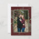 Introducing our enchanting winter wedding photo save the date card, where timeless elegance meets the beauty of the season. The rich burgundy background, softly distressed with white accents, sets a captivating tone for your special day. In the dark sage green text area, your wedding details stand out, surrounded by a delicate cream frame that adds a touch of refinement. Embrace the spirit of winter with a breathtaking frame of lush greenery, featuring holly adorned with rich red berries, mistletoe with its delicate white berries, and the timeless allure of green pine. Created by Simply Farmhouse Press.