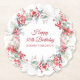 A beautiful and elegant personalised paper coaster designed especially for a 30th birthday party. It features a watercolor wreath of red berries nestled in sage green foliage. Two lines are provided for a customised thank you and the birthday person's name. This item is part of the Winter Berry Collection.