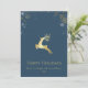 Elegant Winter Blue Gold Deer Business Logo Holiday Card