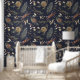 Elevate your interior with this elegant winter-themed wallpaper. Featuring a sophisticated design of pinecones, evergreen branches, and seasonal foliage on a deep navy background, it brings warm, rustic charm to any room. Perfect for creating a festive, cosy, and stylish atmosphere during the holidays and beyond.