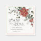 The Elegant Winter Bridal Shower Napkins captures the romance and beauty of a winter wonderland with a touch of festive charm. The design features a watercolor illustration of evergreen branches dusted with snow, creating a soft, enchanting backdrop for a celebration. Red florals and berries are interwoven with the greenery, giving the design a seasonal, yet elegant, winter feel. The modern, unique script adds a personal and contemporary touch, with flowing letters that evoke a sense of warmth and joy amidst the snowy landscape. The contrast of deep greens and bright reds enhances the festive mood, making this item perfect for a winter bridal shower. Matching items available.