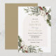 Winter Greenery and Florals Baby Shower invitation featuring a frame of watercolor evergreens and snowflakes. Customise with your information. Click "click to customise further" to change the font style, size or colour.